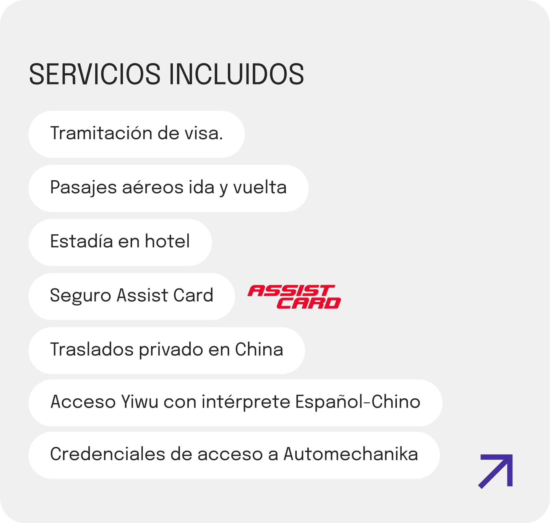 La salida para Automechanika es el 22/11/2025 y la de Yiwu es el 24/11/2025, pero nuestros planes son flexibles. ¿Quieres extender tu estadía?